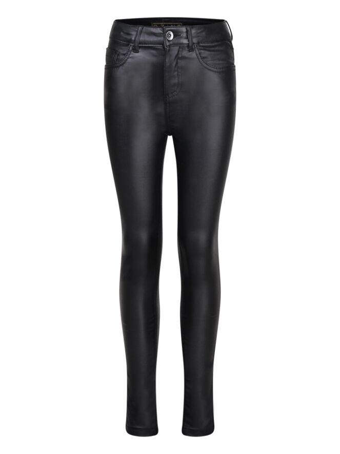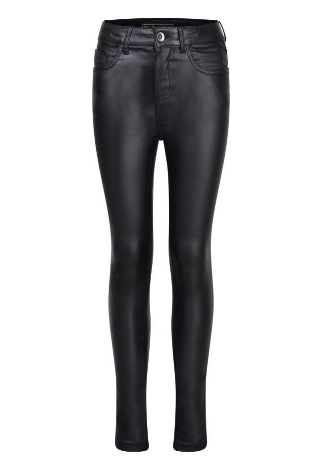 Zwarte leather look broek. Skinny 5-pocket model voor meisjes.