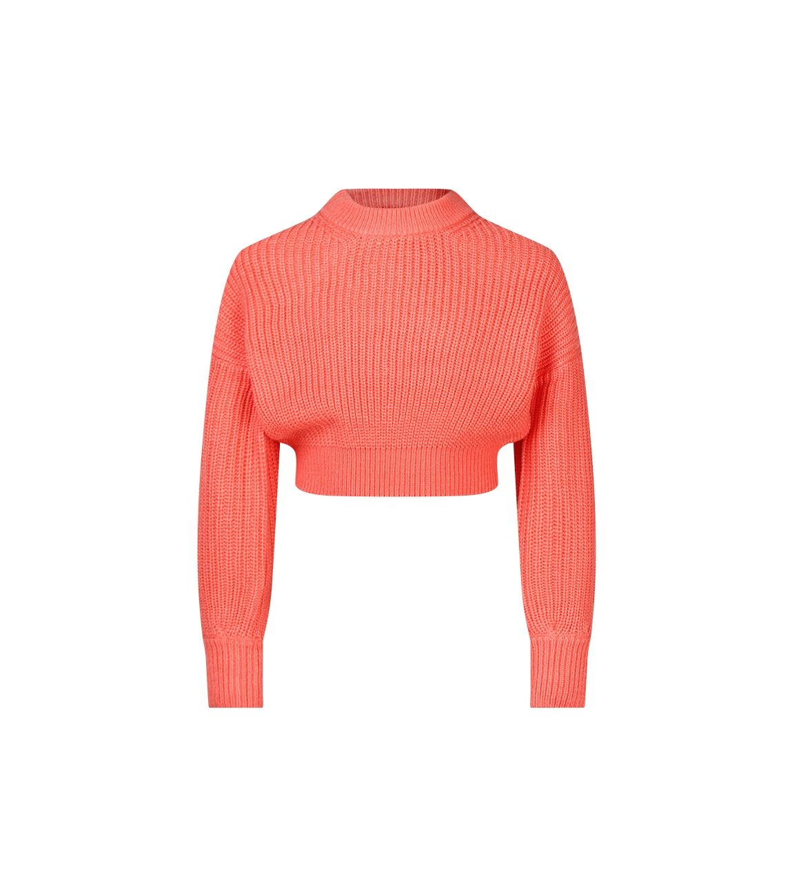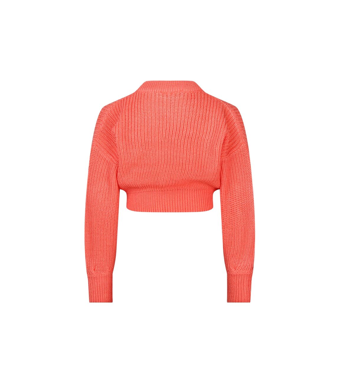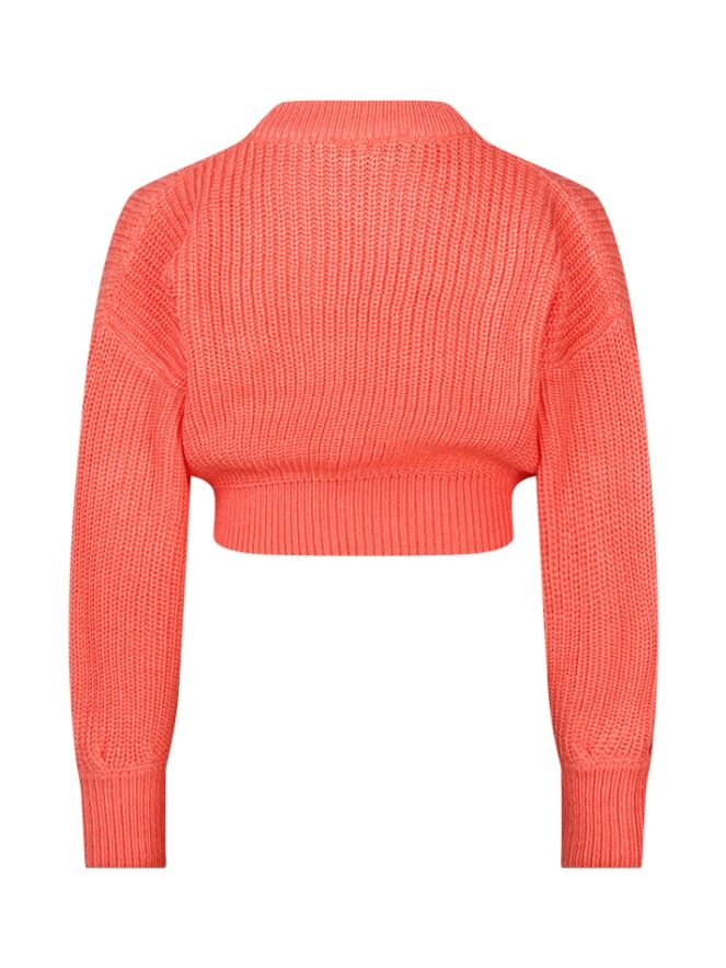Deze trui heeft een kort/wijd model en is verkrijgbaar in vier verschillende kleuren. De structuur is een grof ribbreisel.