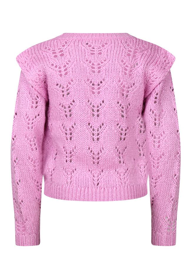 Meisjes trui van ajourbreisel. Hierdoor is hij iets doorschijnend. Het is een wat korter model en heeft een grappig kapmouwtje.
