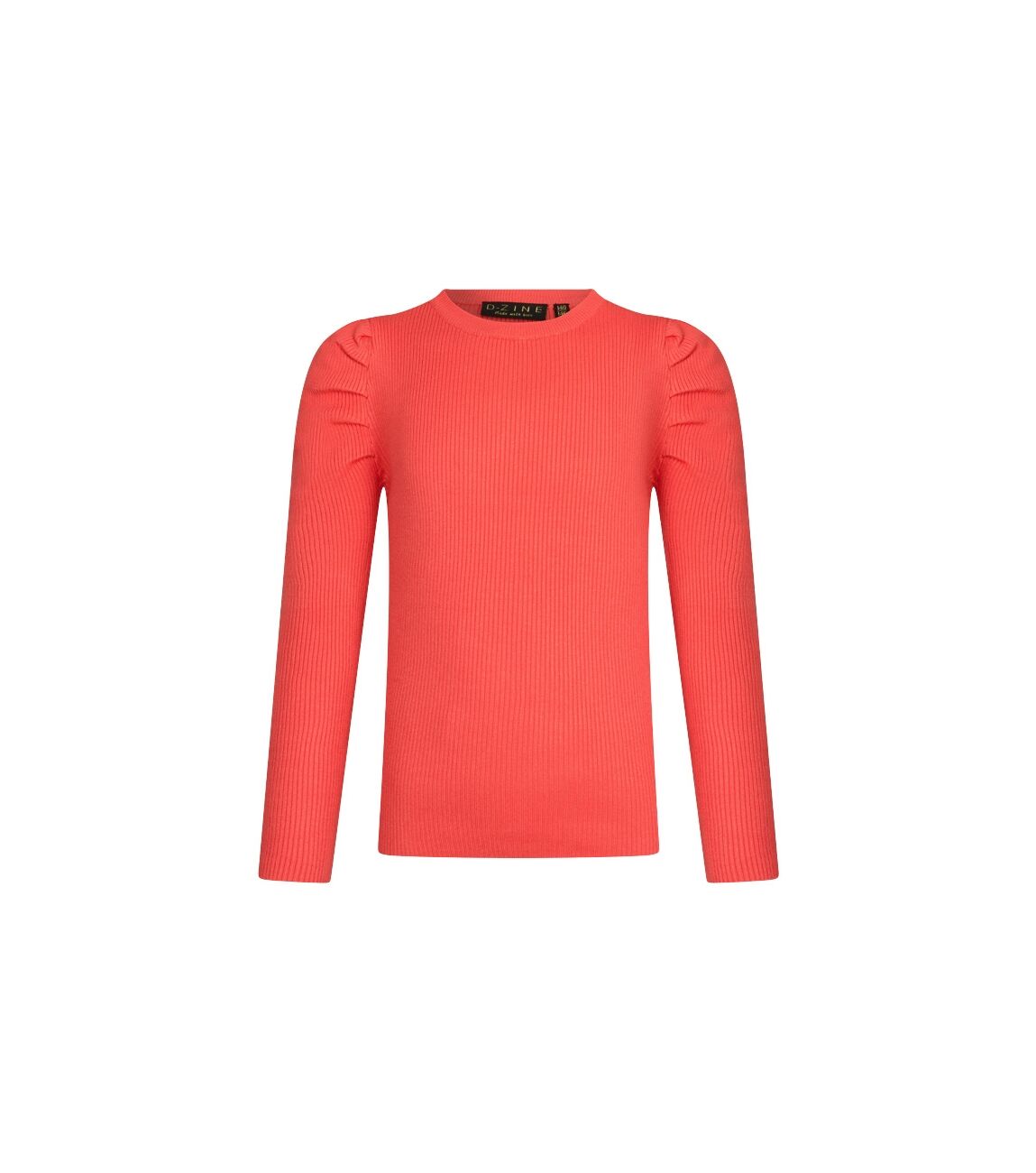 Meisjes trui met lange mouwen, pofmouw en een ronde hals.