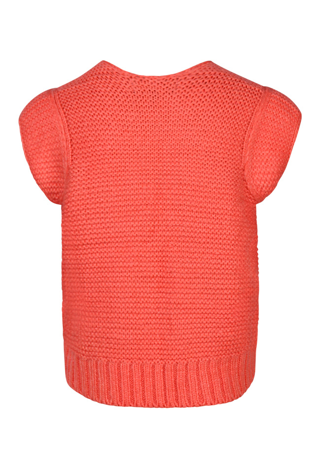 Gebreid gilet met kapmouwen en open voorkant.