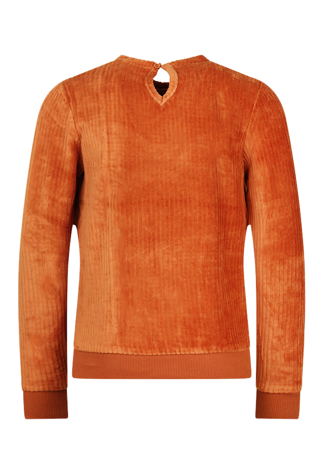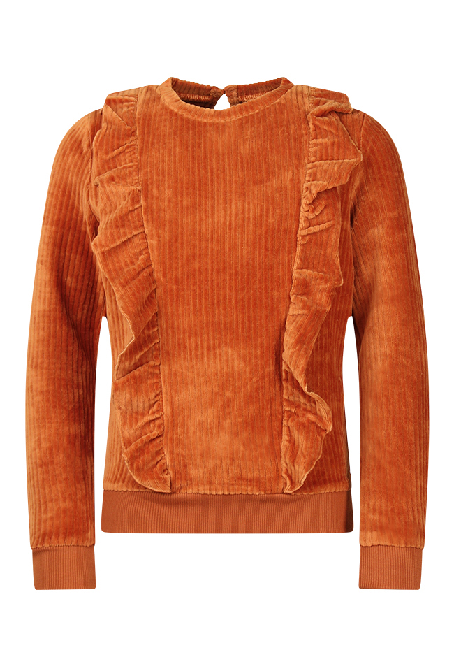 Stijlvol sweater model gemaakt van elastisch rib velours stof. Aan de voorzijde zijn leuke, hippe verticale roezels aangebracht. De sweater heeft een tricot boord aan de onderzijde voor een comfortabele en trendy pasvorm.