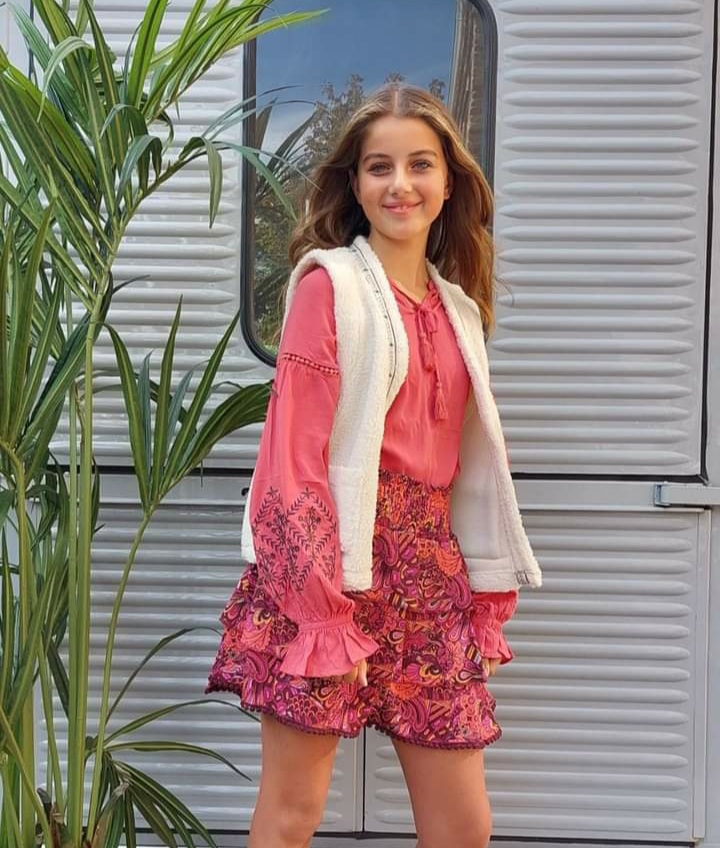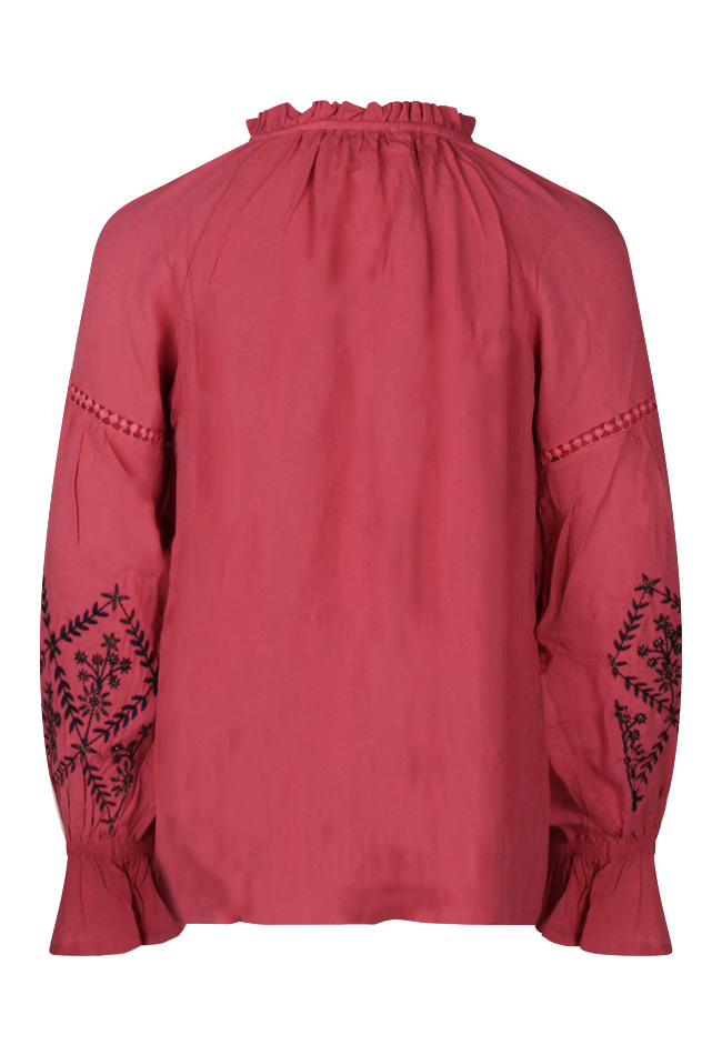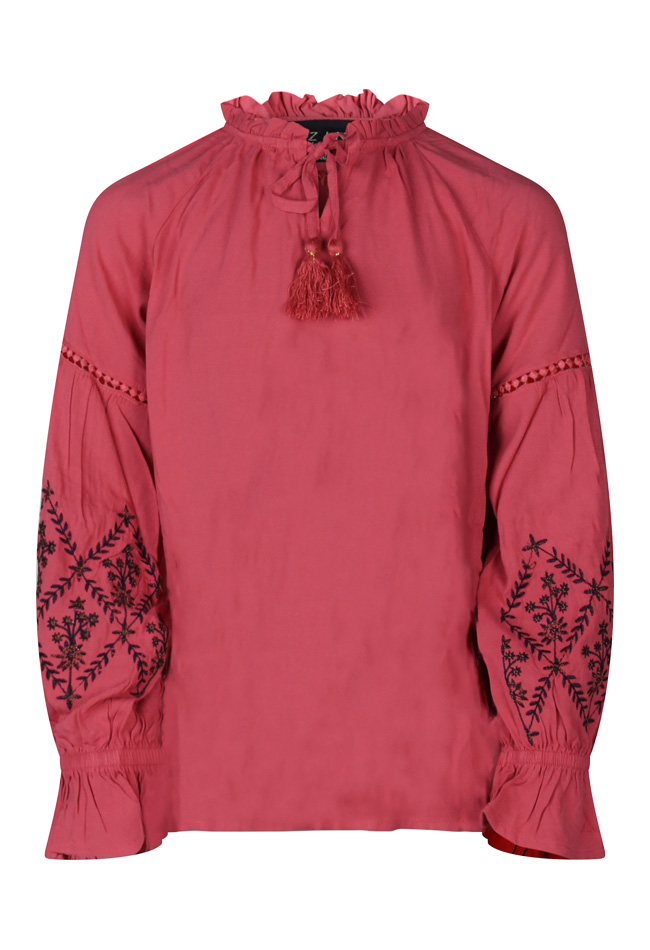 Deze top met lange pof mouwen heeft een borduursel op beide mouwen met aan het uiteinde een elastiek. De top is ruim vallend en heeft kwastjes voor bij de hals. Dezelfde top is ook verkrijgbaar in dames maten onder art.nr. W80483