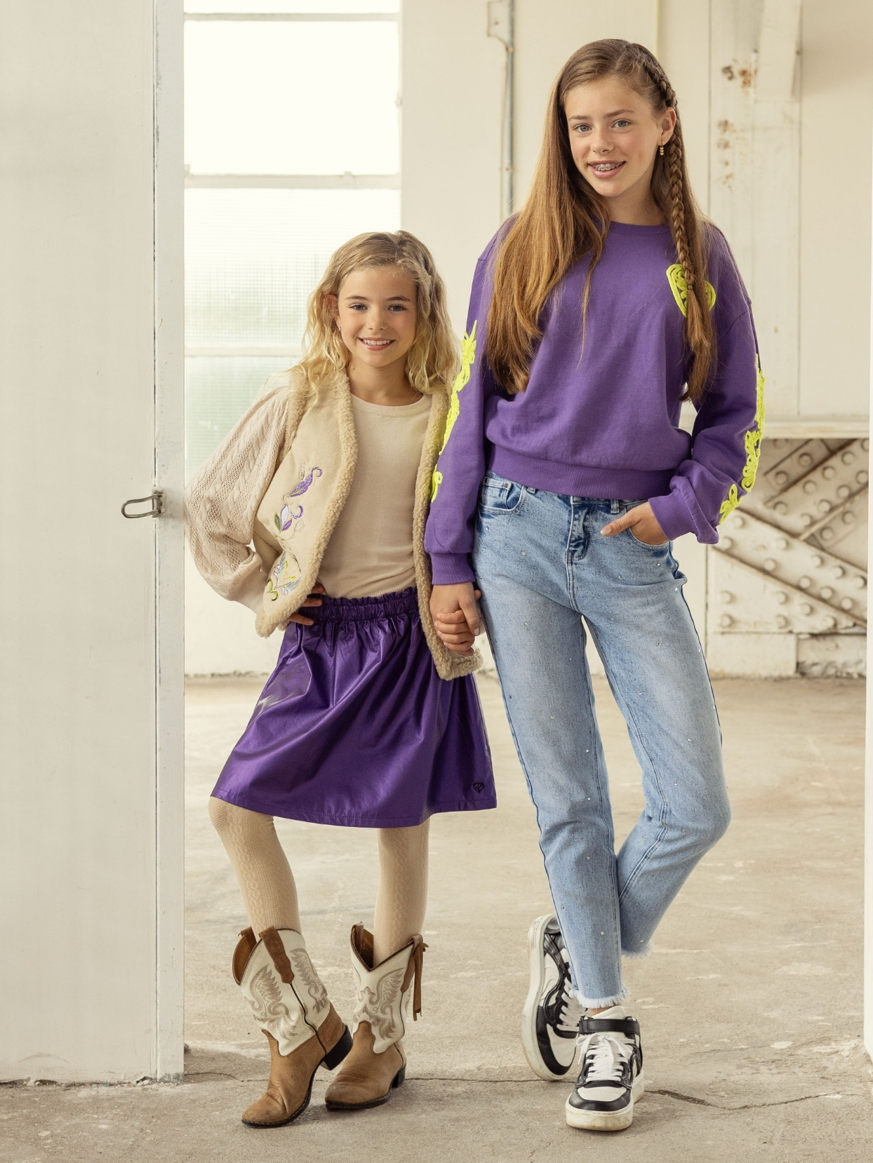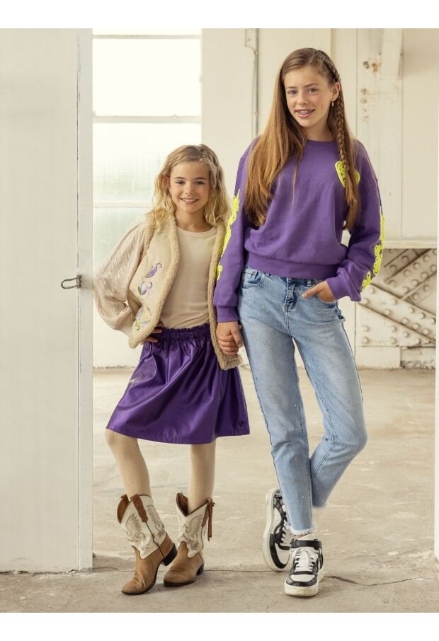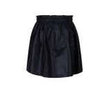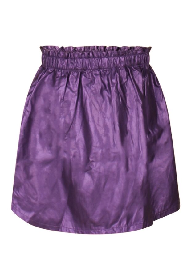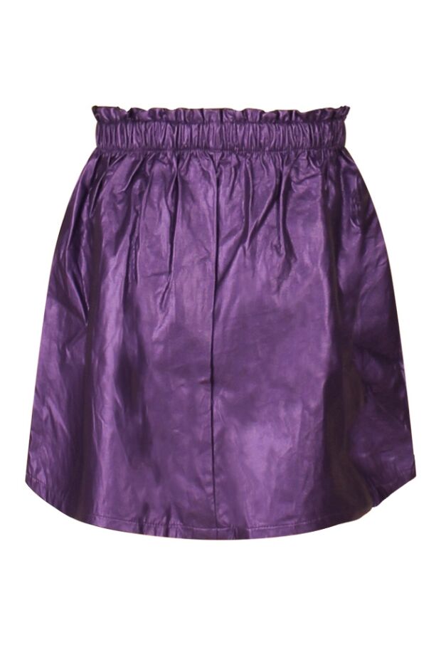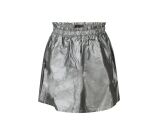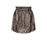 Deze blikvanger met metalic look is van nep leer. Dit rokje is een paperbag model en heeft elastiek in de tailleband. Super leuk te combineren met een stoere sweater of een leuk shirt!