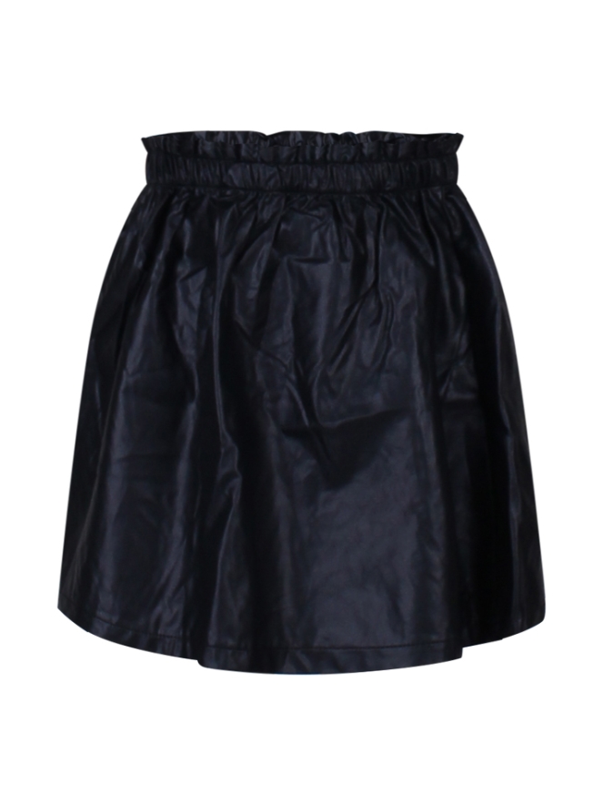 Deze blikvanger met metalic look is van nep leer. Dit rokje is een paperbag model en heeft elastiek in de tailleband. Super leuk te combineren met een stoere sweater of een leuk shirt!