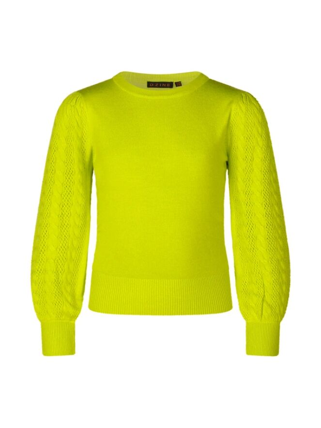 Deze trui van D-Zine is een dunner exemplaar met pofmouw met kabelbrei patroon. Heerlijk casual en comfortabel voor een no nonsens look. Combineer het met een spijkerbroek of ander denim onderstuk en je bent ready to go!