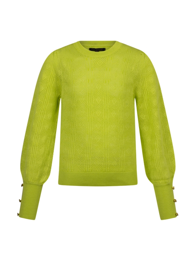Misschien wil je nog niet aan een trui denken maar dit is echt een luchtige variant want deze is een luchtige door zijn ajourbreisel. Met leuke details zoals de pofmouw en knoopjes op het uiteinde bij de pols. Hij kan lichtjes doorschijnen maar dit valt erg mee.