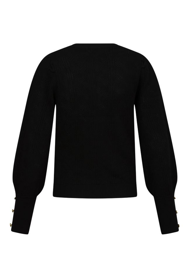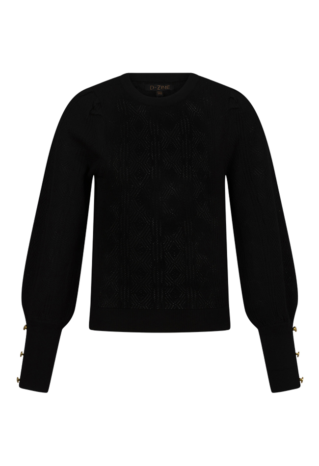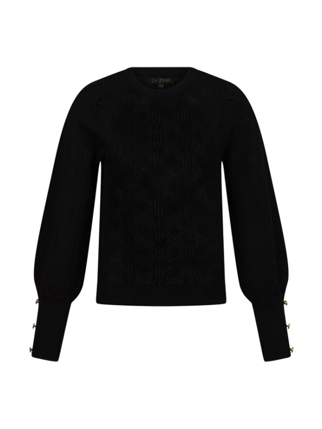 Misschien wil je nog niet aan een trui denken maar dit is echt een luchtige variant want deze is een luchtige door zijn ajourbreisel. Met leuke details zoals de pofmouw en knoopjes op het uiteinde bij de pols. Hij kan lichtjes doorschijnen maar dit valt erg mee.