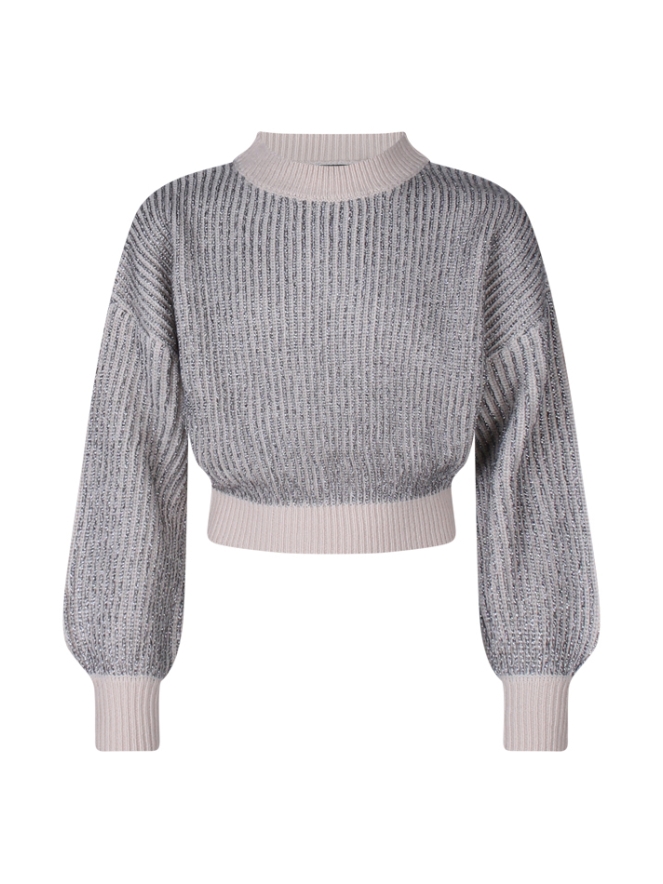 Deze rib gebreide trui rekt lekker met je mee en is een kort cropped en wijd model. De trui glimt en glinsterd door de lurex draad die door het garen is verweven. Echt net even anders dus!