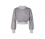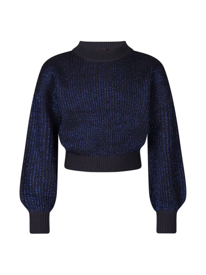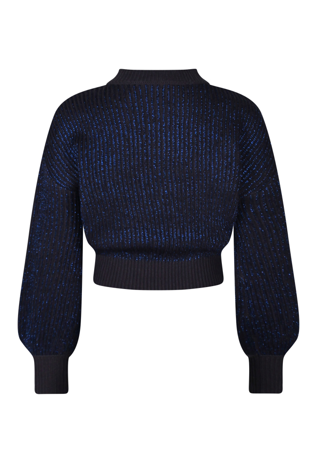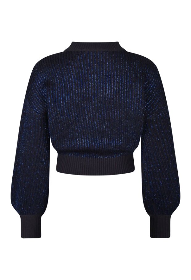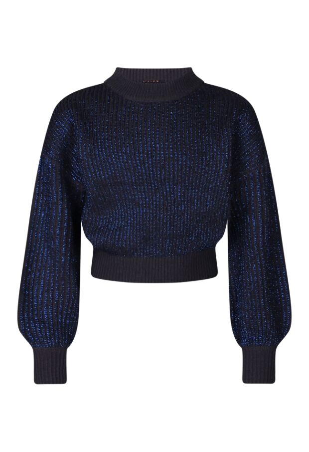 Deze rib gebreide trui rekt lekker met je mee en is een kort cropped en wijd model. De trui glimt en glinsterd door de lurex draad die door het garen is verweven. Echt net even anders dus!