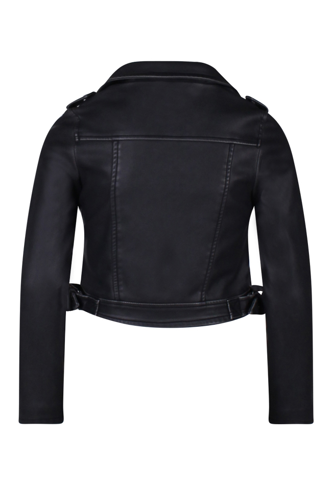 Voor stoere meisjes hebben we dit mooie bikerjack van fake leather. Dit jasje zit vol met leuke details zoals voorop wel 3 ritszakken waarvan 1 voor de sier is. Een verstelbare taille door middel van gespen in de middel en heb je de stoere reverskraag al gezien? Hou je van twinning? Dit leuke jack is er ook in dames maten van Lizzy Lou!