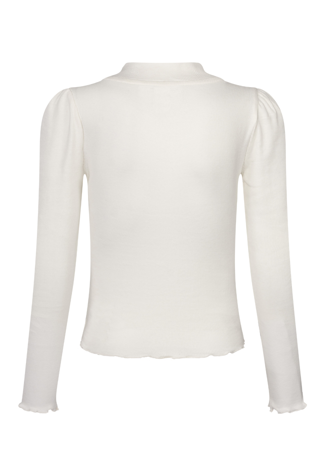 T-shirtje met lange mouwen in een effen kleur. Altijd handig te combineren en dus een musthave! In trendy kleuren van dit moment. De turtleneck geeft je warmte en de pofmouw extra charme! De stof heeft een fijne rib en is lekker flexibel.