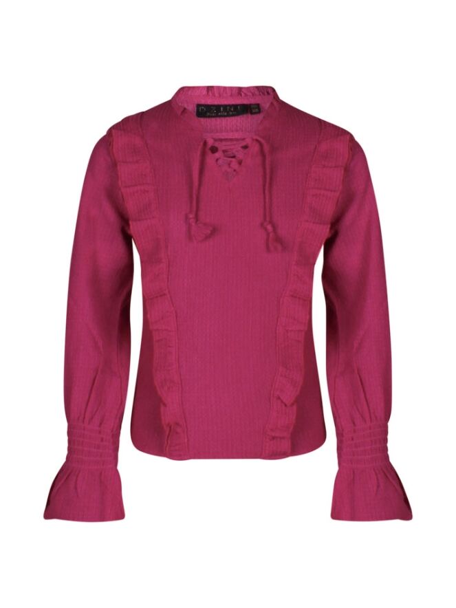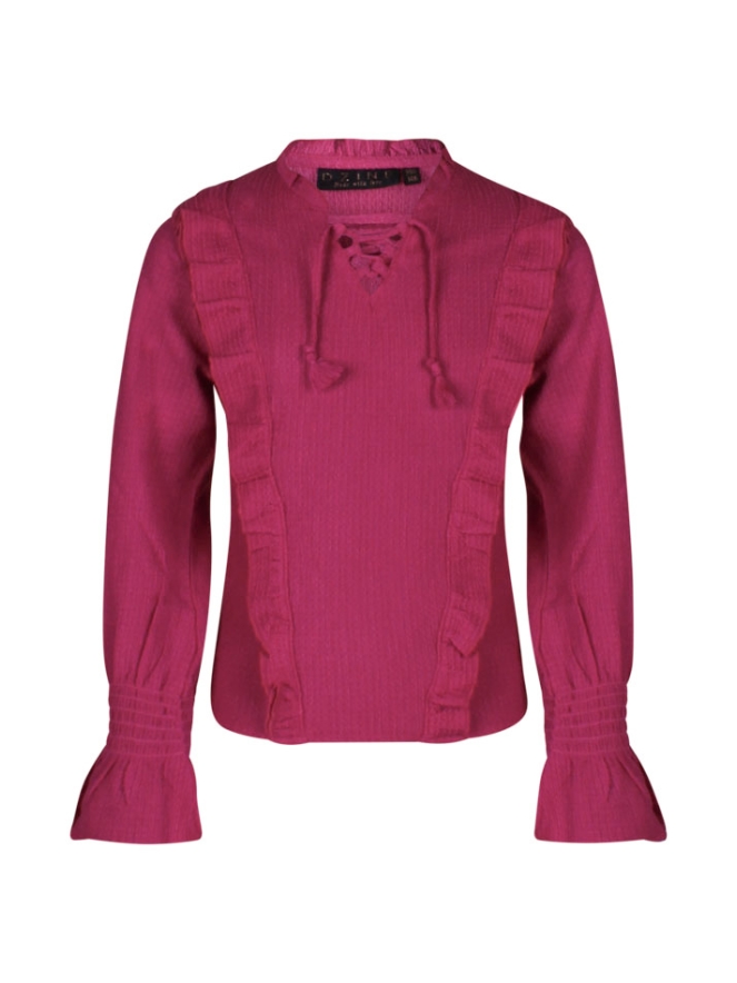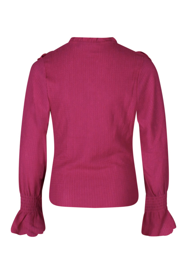 Deze fancy top met uitlopende mouw is echt even anders. Met ruches voorlangs en een leuk vetertje voorop voor een leuk effect. Wil je wat extra warmte? Draag er dan een giletje over met bijvoorbeeld bont dan weten wij zeker dat je lekker warm zult zijn!