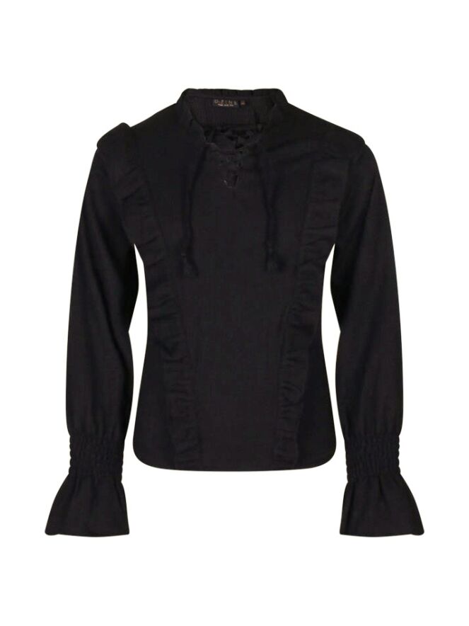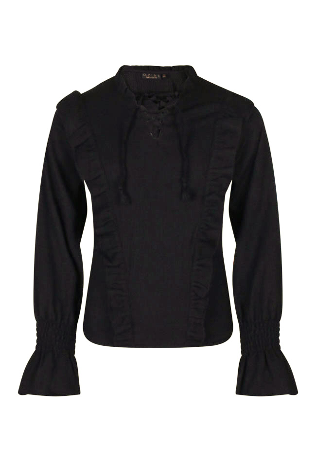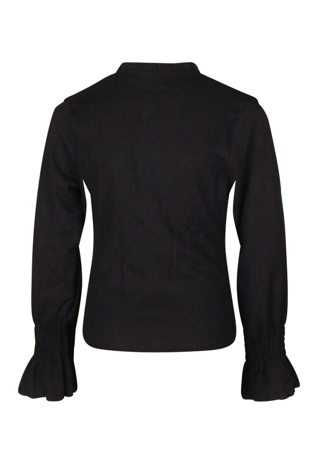 Deze fancy top met uitlopende mouw is echt even anders. Met ruches voorlangs en een leuk vetertje voorop voor een leuk effect. Wil je wat extra warmte? Draag er dan een giletje over met bijvoorbeeld bont dan weten wij zeker dat je lekker warm zult zijn!