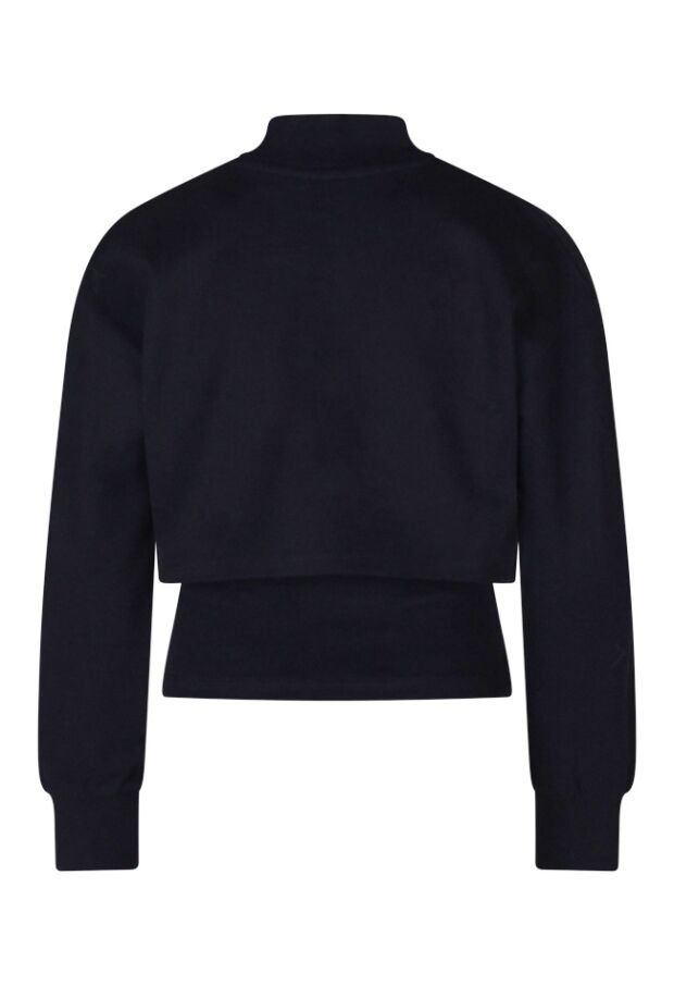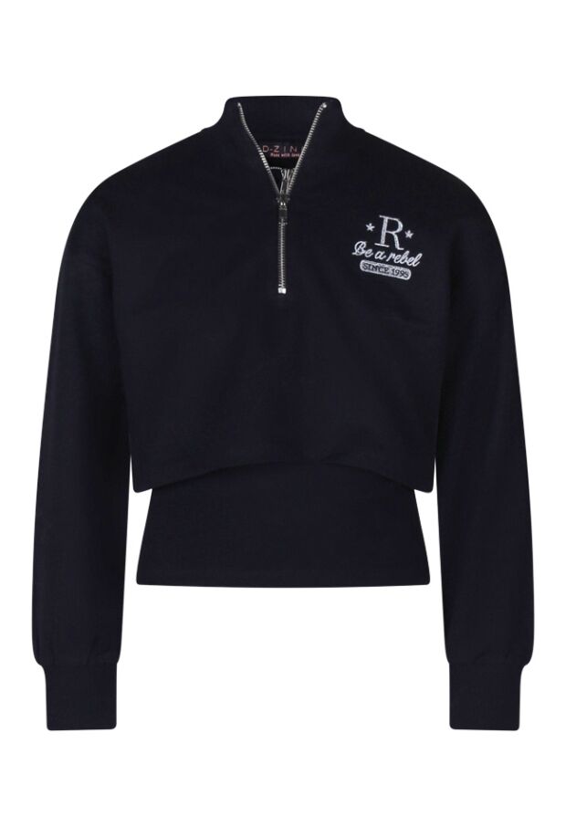 Leuk! Net even anders is deze sweater zeker! Dit is een 2 in 1 sweater met hemd. Het hemdje zit vast in de sweater en doordat de sweater kort en dus cropped is komt het hemdje er onderuit. Voor de sportieve look of gewoon waar jij zin in hebt!