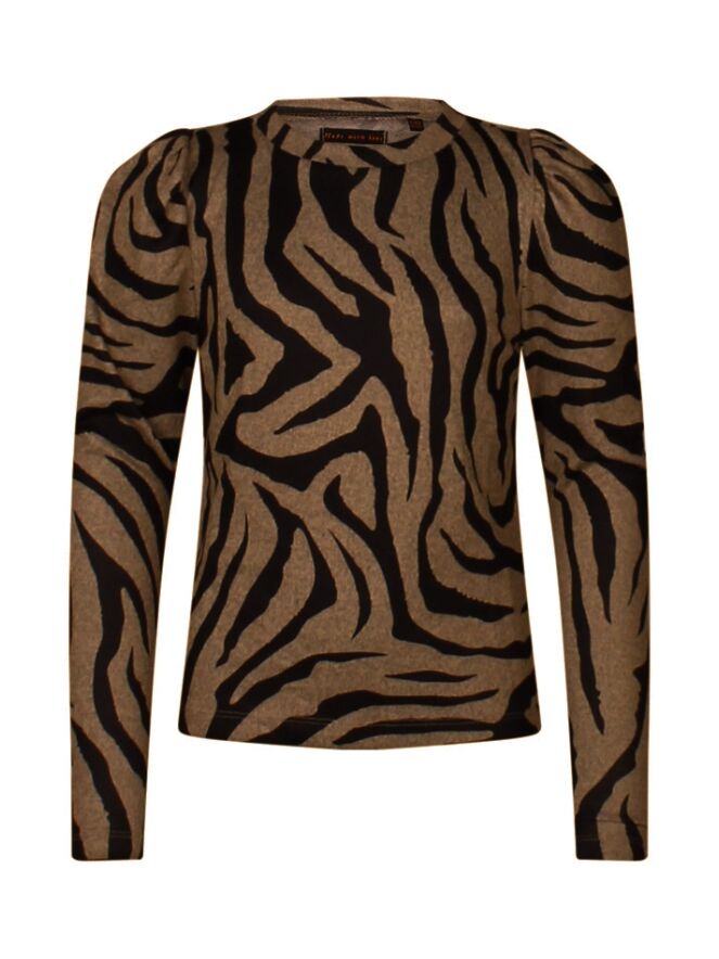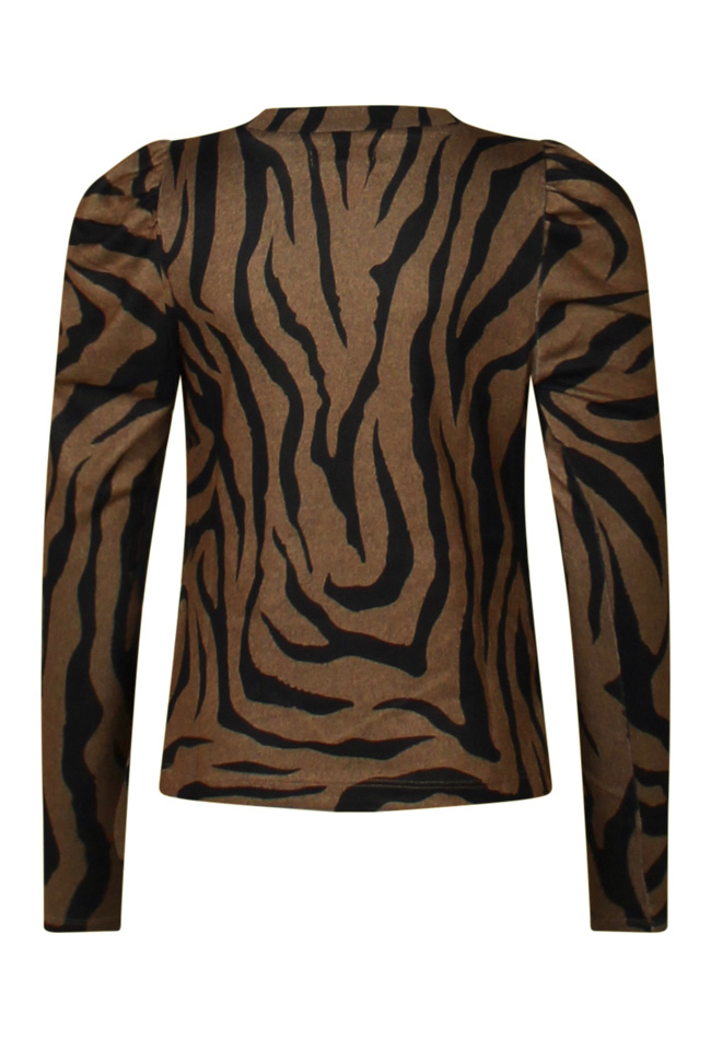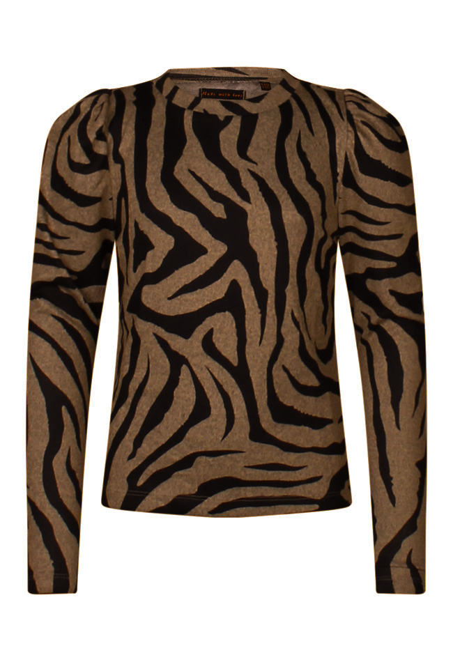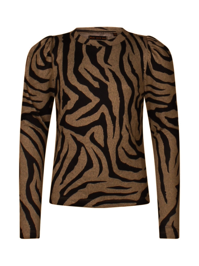 Deze top met zebra print heeft een ronde hals en een klein pofmouwtje. Leuk te dragen op een rokje of gewoon op je spijkerbroek voor een casual look met een kleine twist. Vind mem (moeder in het fries) deze top ook leuk? We hebben hem ook van City Life onder art.nr. W90415 Twinning is winning!