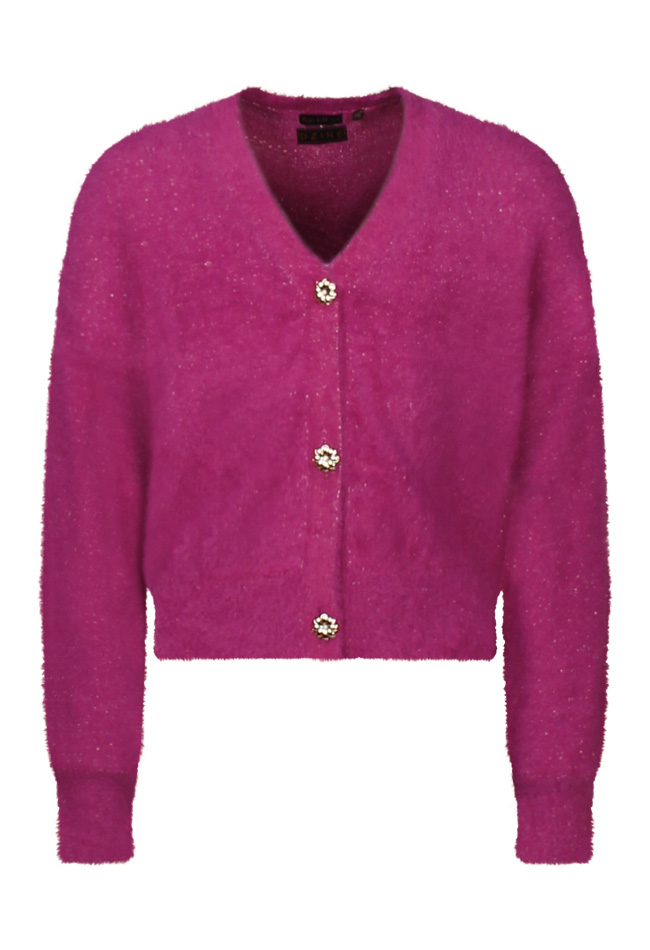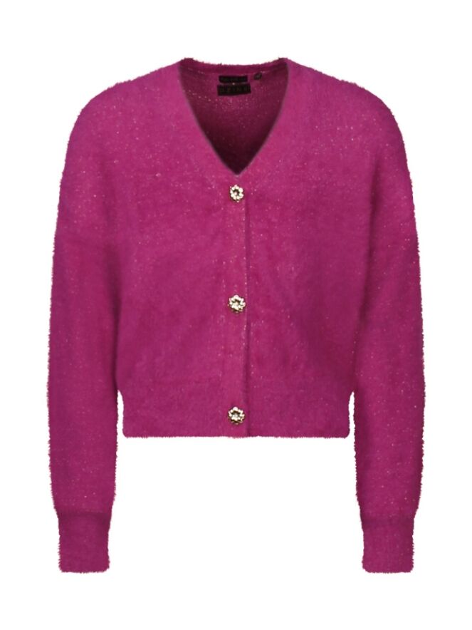 Dit super zachte vestje gemaakt van featheryarn heeft een aaibaar pluizig uiterlijk. Met goudkleurige bloemen knoopjes voor net dat beetje extra. Ook zit er een glitterdraadje door verweven voor een extra shiny effect.