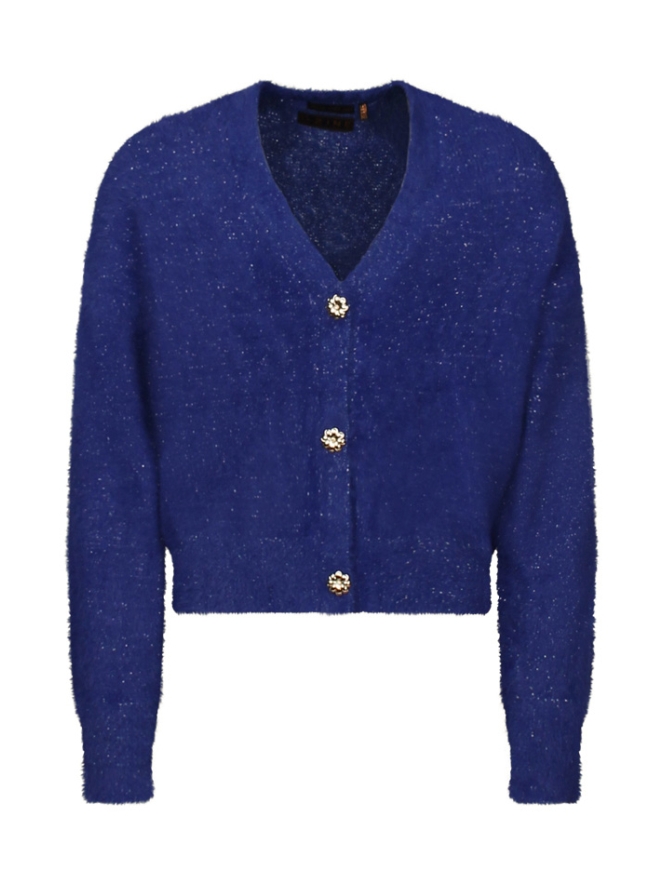 Dit super zachte vestje gemaakt van featheryarn heeft een aaibaar pluizig uiterlijk. Met goudkleurige bloemen knoopjes voor net dat beetje extra. Ook zit er een glitterdraadje door verweven voor een extra shiny effect.