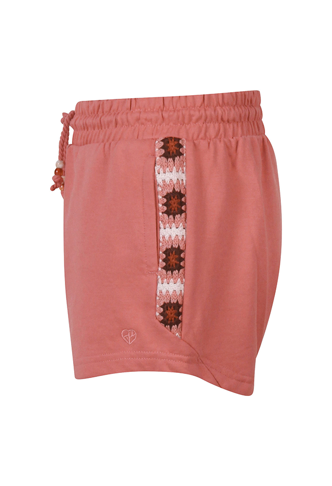 Deze comfortabele meisjes sweatshort van D-zine is ideaal voor een casual en speelse look. Gemaakt van zachte sweatstof voelt de short licht en soepel aan, terwijl de comfort fit zorgt voor extra bewegingsvrijheid. Het korte model heeft een elastische tailleband met koordje voor een verstelbare pasvorm en twee praktische zakken. Subtiele crochette geborduurde biezen geven de short een charmant detail. Verkrijgbaar in de kleuren groen, oud roze en marine, waardoor er voor elk meisje een favoriete stijl is. Perfect om te combineren met T-shirts, tops of blouses voor een speelse en trendy outfit.