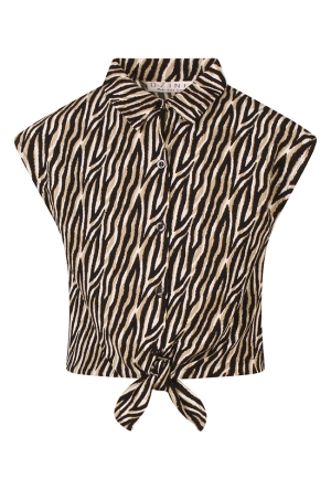De blouse heeft een cropped lengte, wat zorgt voor een moderne en speelse look. De klassieke kraag en knoopsluiting geven een nette touch, terwijl de omgeslagen korte mouwen en het elastiek aan de onderkant zorgen voor een casual en comfortabele pasvorm. Verkrijgbaar in zowel effen kleuren als een opvallende zebraprint, zodat elk meisje haar favoriete stijl kan kiezen.