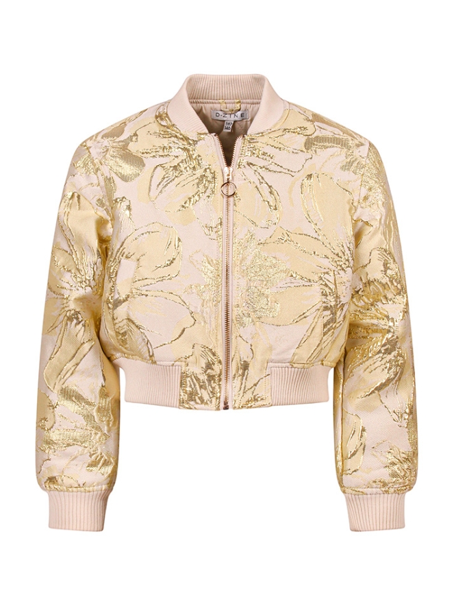 Leuke meisjesbomberjas met metallic bloemenprint, rits en handige steekzakken. De jas is lekker gevoerd voor extra warmte en voelt zacht aan. Combineer de jas met een stoere jeans en sneakers voor een sportieve en meisjes look!