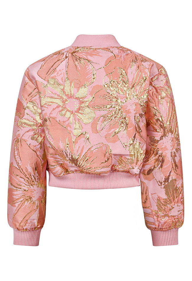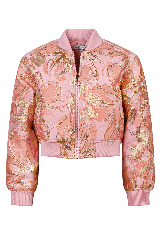 Leuke meisjesbomberjas met metallic bloemenprint, rits en handige steekzakken. De jas is lekker gevoerd voor extra warmte en voelt zacht aan. Combineer de jas met een stoere jeans en sneakers voor een sportieve en meisjes look!