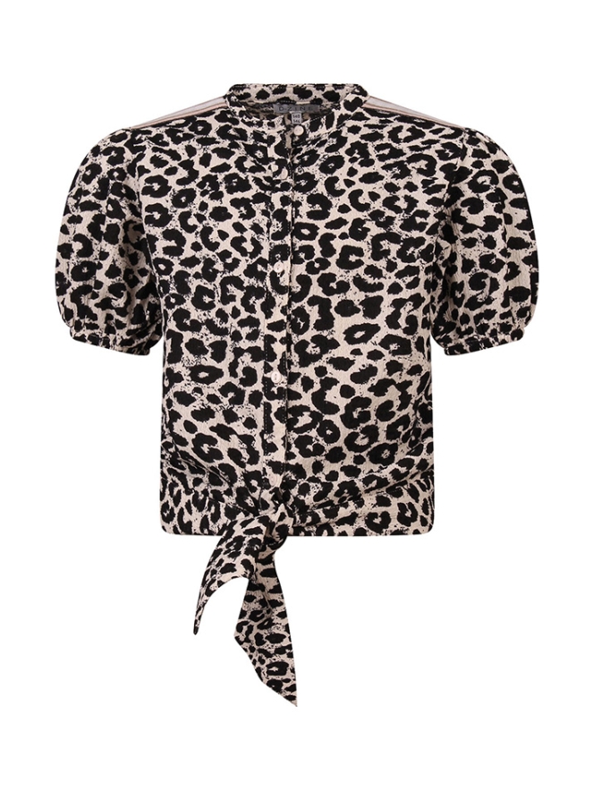 Stijlvolle meisjesblouse! Geknoopt aan de voorkant voor een speels effect en gemaakt van crinkle-stof voor een comfortabele, licht geplooide textuur. De opvallende print maakt deze blouse perfect voor zowel speciale gelegenheden als een leuke dagelijkse outfit. Combineer met een jeans of rok voor een frisse, modieuze look.