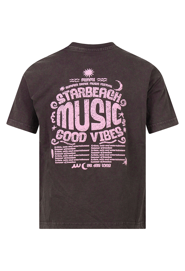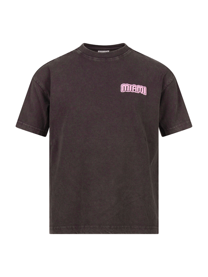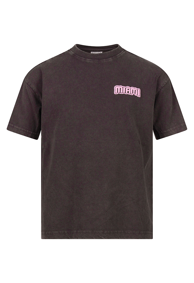 Dit stoere meisjes T-shirt van D-zine brengt een zomerse festivalvibe in elke outfit. Gemaakt van 100% katoen voelt het shirt zacht aan en is het heerlijk comfortabel voor dagelijks gebruik. De acid wash effen voorzijde krijgt een opvallende twist dankzij de print met â??Miamiâ? op de voorkant, wat het shirt een echte eyecatcher maakt. Op de achterkant is een speelse puffprint aangebracht, die extra textuur en een uniek effect geeft. Het shirt heeft een klassieke ronde hals en korte mouwen, waardoor het makkelijk te combineren is met shorts, jeans of rokken voor een casual, zomerse of feestelijke look.