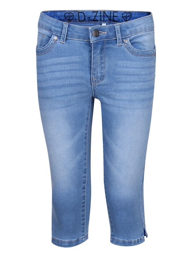 Denim shorts voor meiden. De shorts hebben een capri model en komt tot de/net over de knieeen ongeveer. Deze broeken zijn gemaakt van gerecycled plastic flesjes. Materiaal: 71% katoen, 27% repreve polyester, 2% elastaan