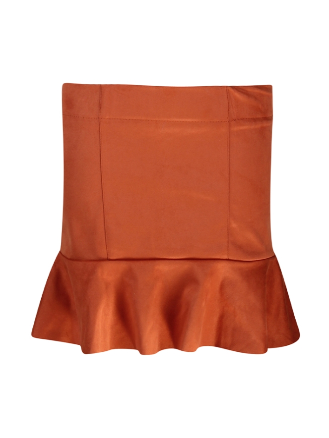 Suede rokje van D-zine. Het rokje heeft een peplum look en een elastieken taille. Materiaal: 95% polyester, 5% elasthan. wassen op 30 graden, niet bleken, niet in de droger, kan gestreken worden.