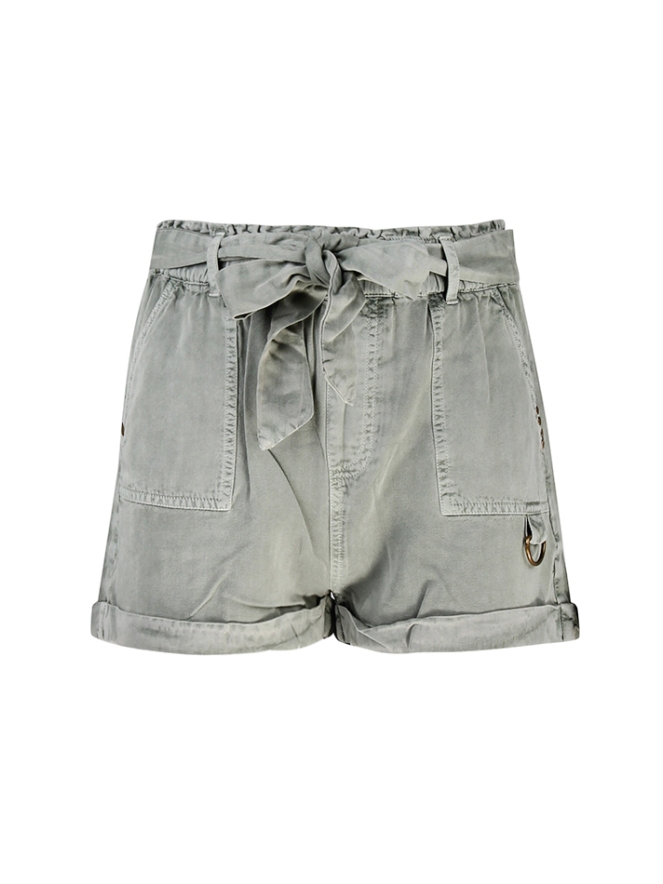 Denim shorts van D-zine. De shorts zijn van lichte dunne denim stof. Er zit en strik riem in de taille en studs op de zakken. Materiaal: 100% viscose. Wassen op 30 graden, niet bleken, niet in de droger, kan gestreken worden.
