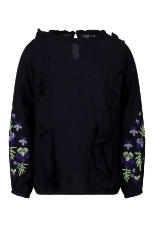 Smock top van D-zine. De top heeft een elastieken body met pofmouw. De mouwen kunnen off the shoulder of gewoon. Materiaal: 100% viscose. wassen op 30 graden, niet bleken, niet in de droger, kan gestreken worden.