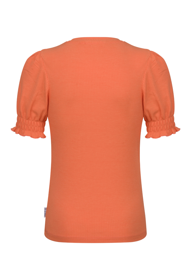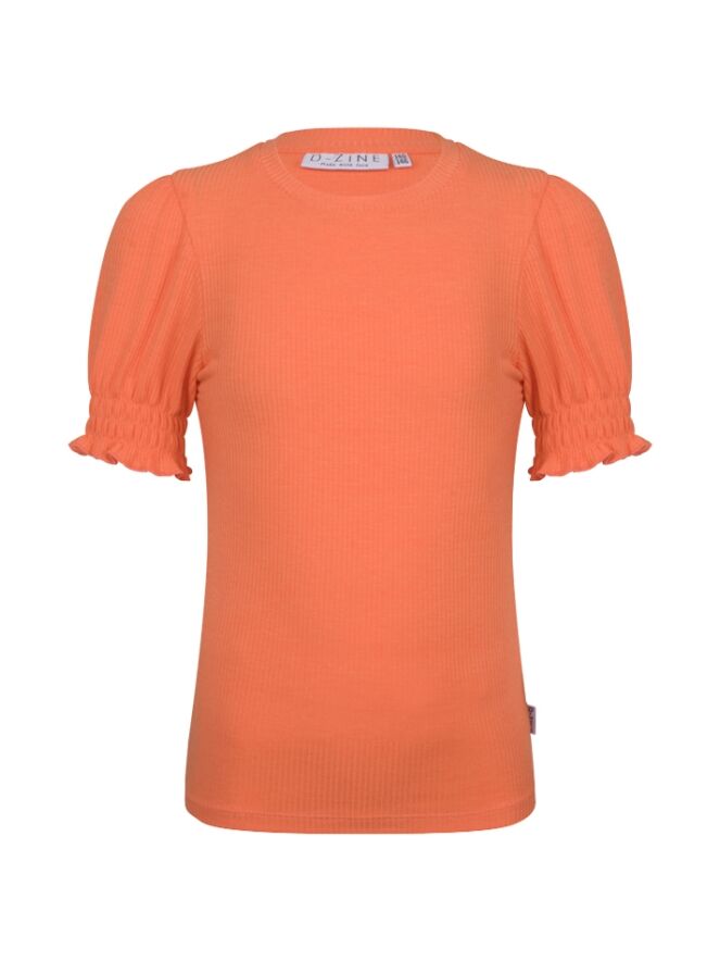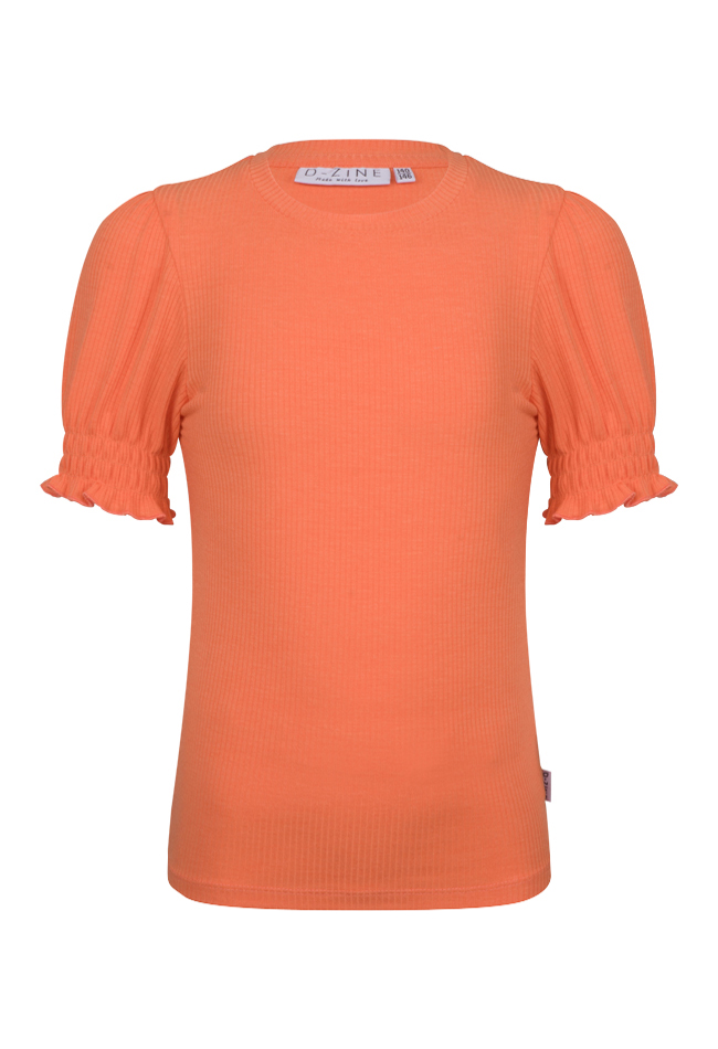 T-shirt gemaakt van ribstof. Het t-shirt heeft korte pofmouwen en een ronde hals. Verkrijgbaar in zeven verschillende kleuren.