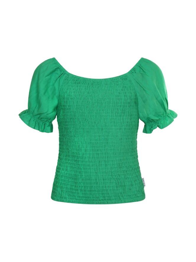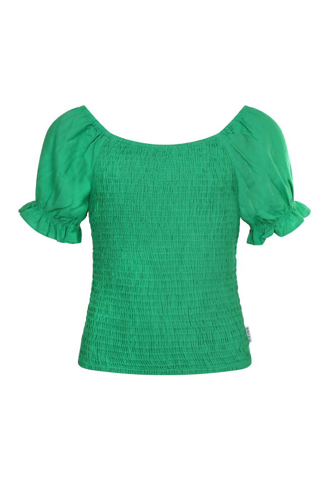 Gesmokte top met een leuke pofmouw.