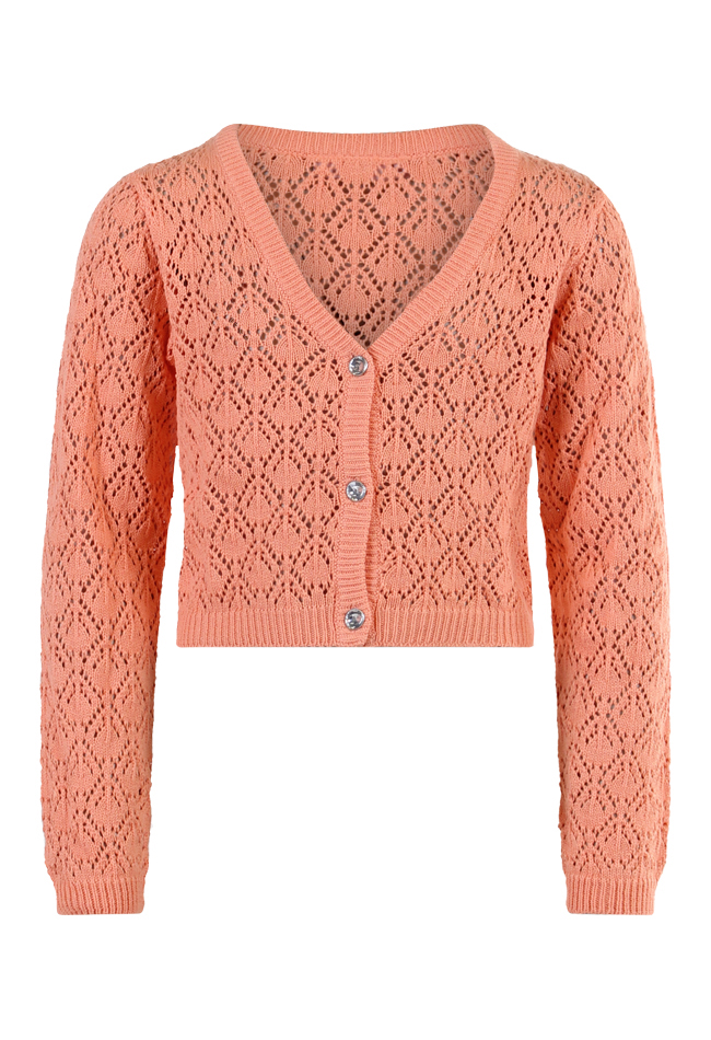 Ajour gebreid cropped vest met diamanten knoopjes aan de voorkant. Dit vest is verkrijgbaar in twee zomerse kleuren.