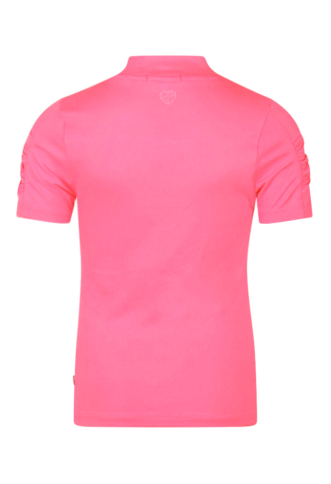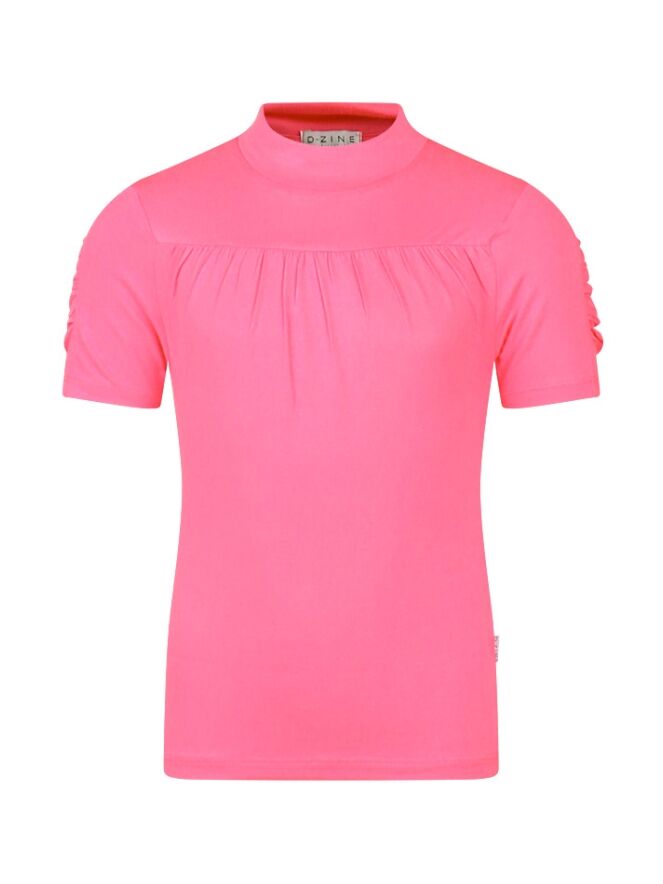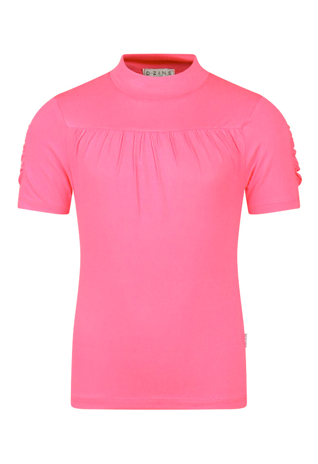 Deze top met korte mouwen heeft een col, kleine plooitjes voor over de borst en rimpelmouwtjes.