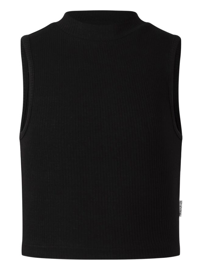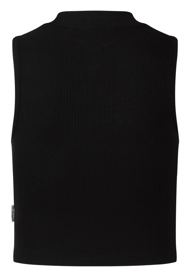 Dit shirtje zonder mouwen is een korter modelletje en is nauw omsluitend.