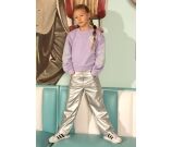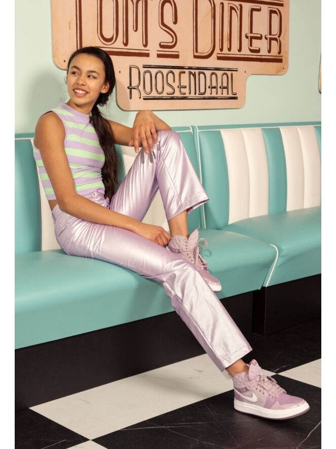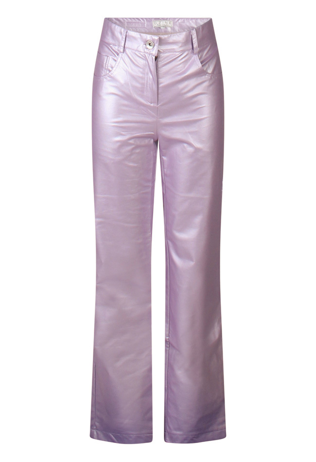 Deze metalic gecoate broek van imitatie leer is een 5 pocket model met rechte broekspijpen. Deze broek is er ook in volwassen maten van ons merk Lizzy Lou onder art.nr. Z80173