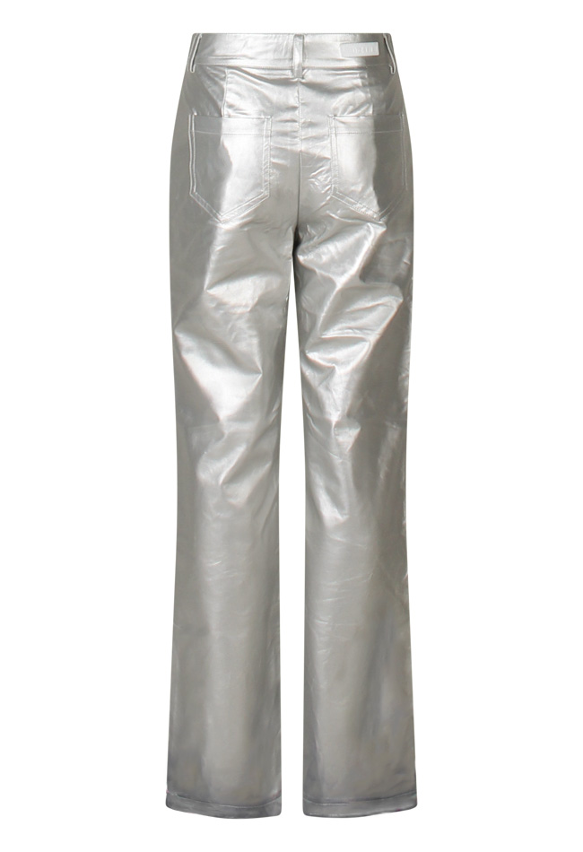 Deze metalic gecoate broek van imitatie leer is een 5 pocket model met rechte broekspijpen. Deze broek is er ook in volwassen maten van ons merk Lizzy Lou onder art.nr. Z80173