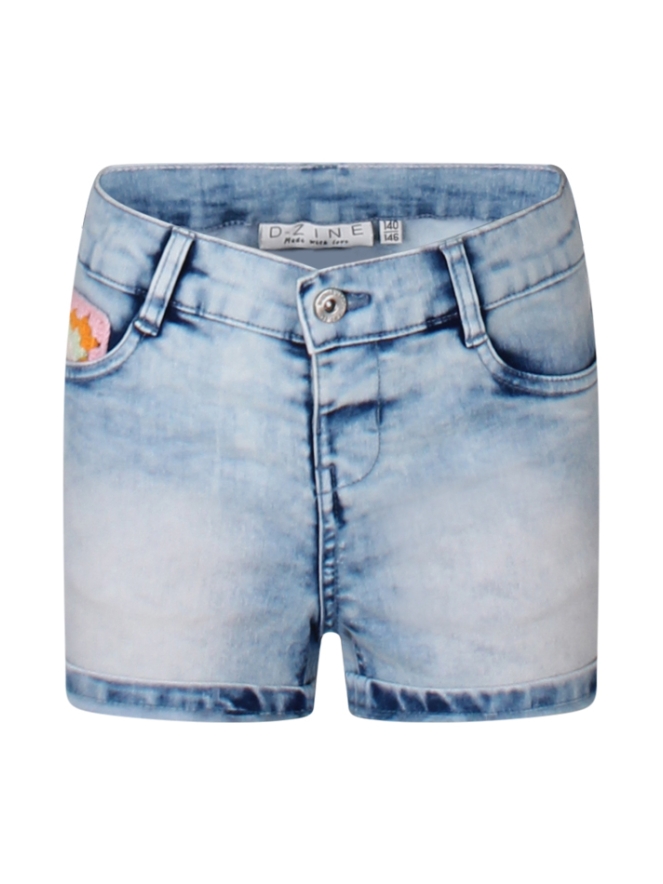 Onze denim short in 5-pocket model heeft een leuk gehaakt detail in de rechter voorzak. Dit shortje is een must-have voor elke kleine fashionista die op zoek is naar comfort voor haar nieuwe avonturen!