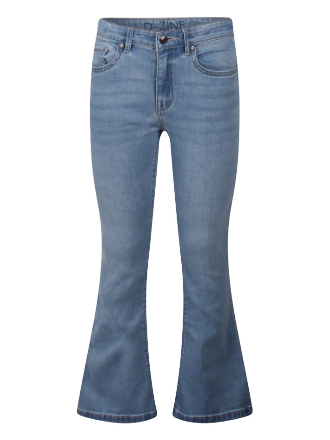 Deze flair jeans voor meisjes is een 5 pocket model en sluit wat hoger. High waist. Wist je dat er plastic flessen zijn gerecycled en verwerkt in deze broek?