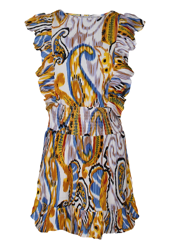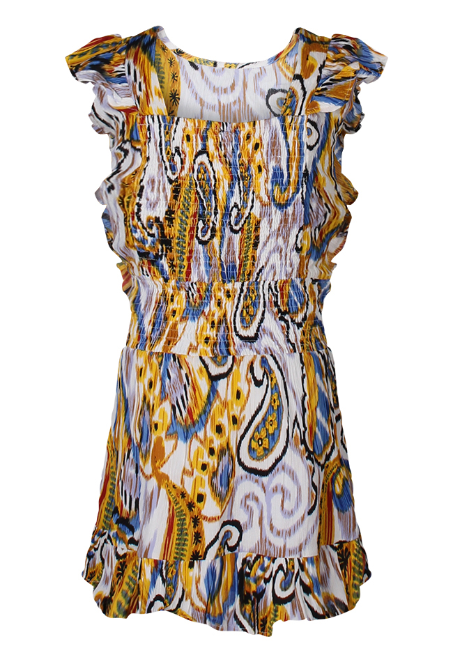 Time to shine! Dit zomerse jurkje voor meisjes van D-Zine heeft een frisse kleurrijke Ikat print met vierkante hals. Net even wat anders! In de taille zit een brede elastische smockband. Dit jurkje is luchtig voor zomerse dagen, heeft een dun katoenen onderrokje en brede schouderbandjes met ruche. Toppertje!