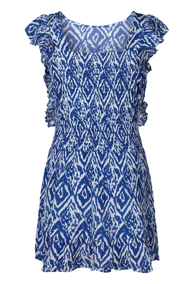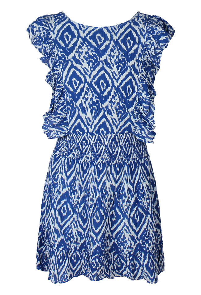 Time to shine! Dit zomerse jurkje voor meisjes van D-Zine heeft een frisse Ikat print en vierkante hals. Net even wat anders! In de taille zit een brede elastische smockband. Dit jurkje is luchtig voor zomerse dagen, heeft een dun katoenen onderrokje en brede schouderbandjes met ruche. Toppertje!