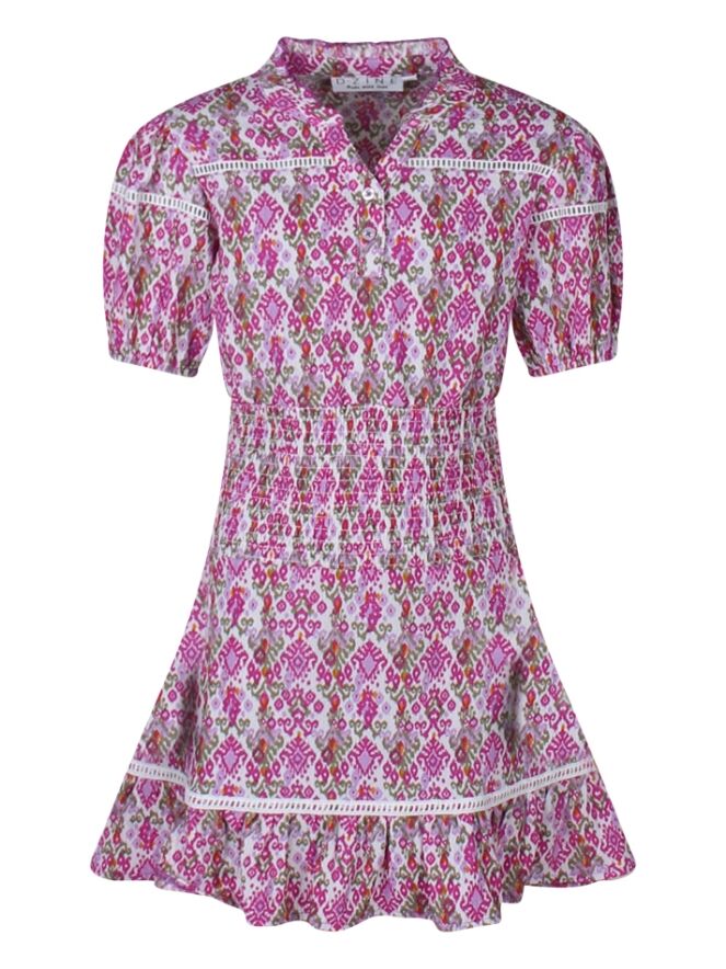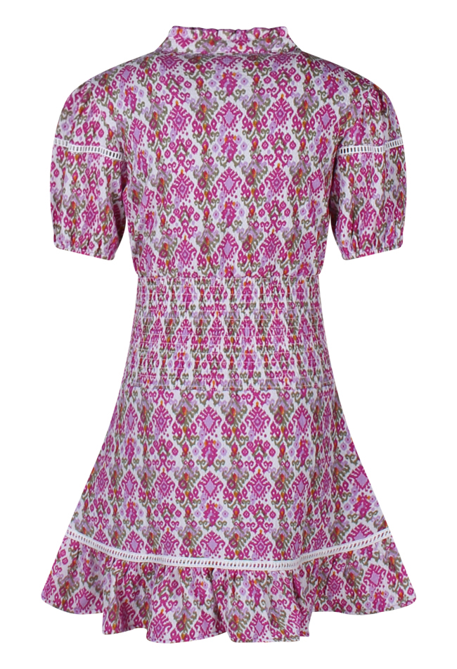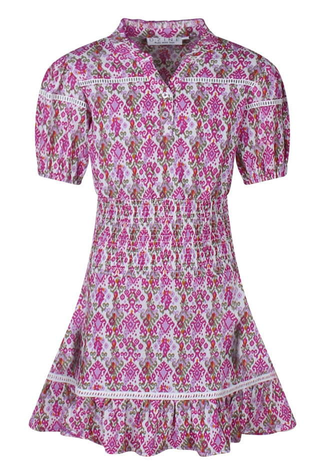 We love summerdresses! Dit mooie jurkje heeft prachtige details zoals de brede smockband in de taille, ruche rond de hals en ingezette doorzichtige sierbiesjes. Combineer het met een zomerse schoen en wij zeggen niets meer aan doen!