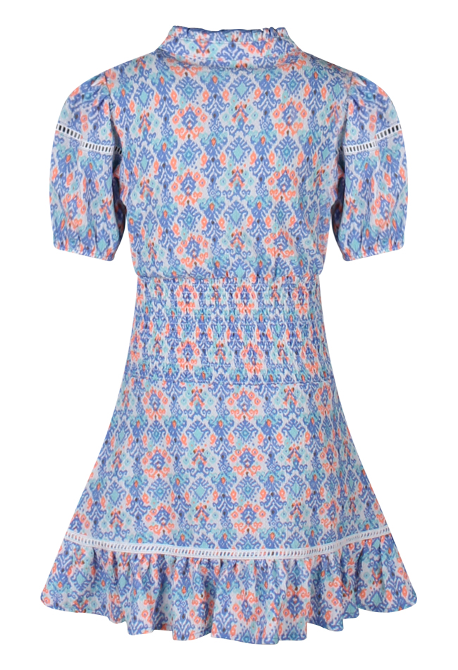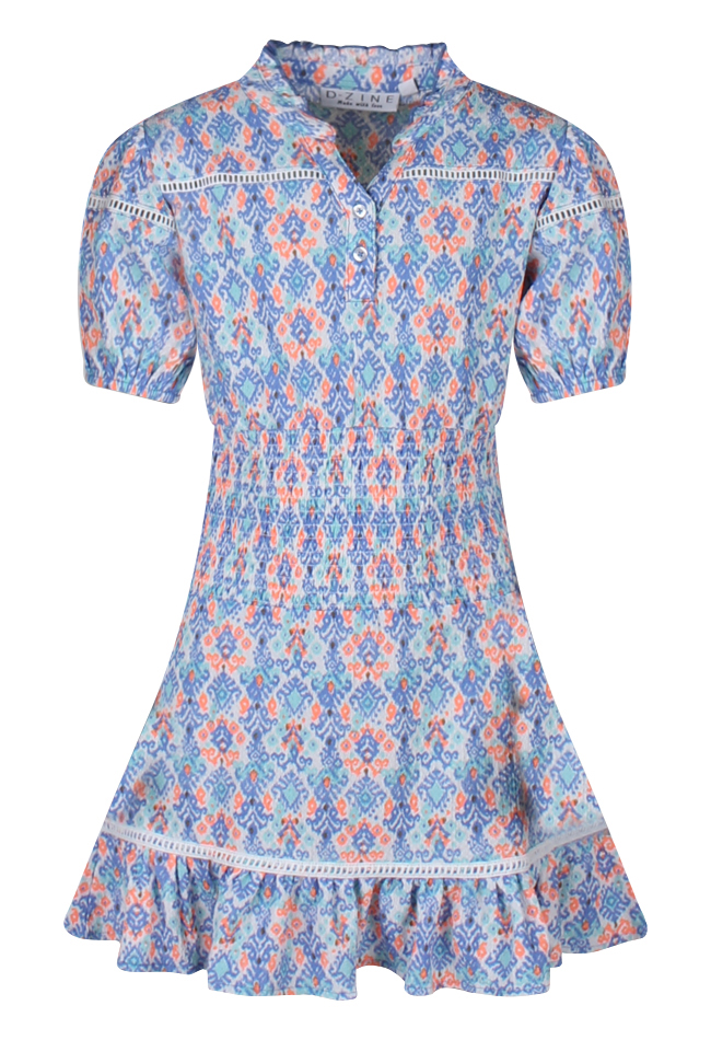 We love summerdresses! Dit mooie jurkje heeft prachtige details zoals de brede smockband in de taille, ruche rond de hals en ingezette doorzichtige sierbiesjes. Combineer het met een zomerse schoen en wij zeggen niets meer aan doen!
