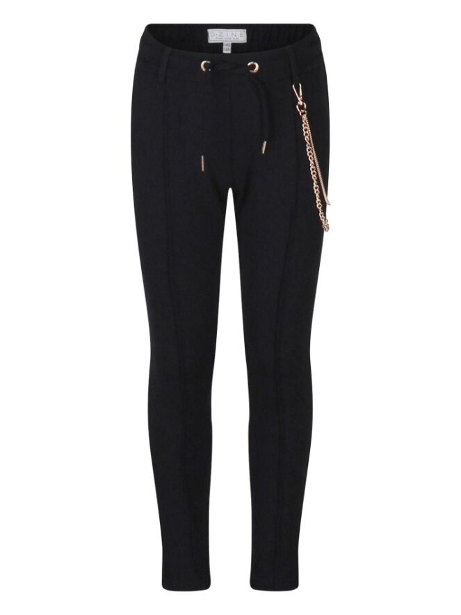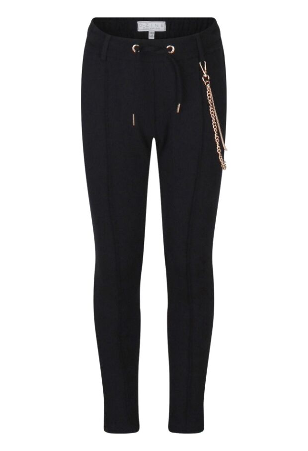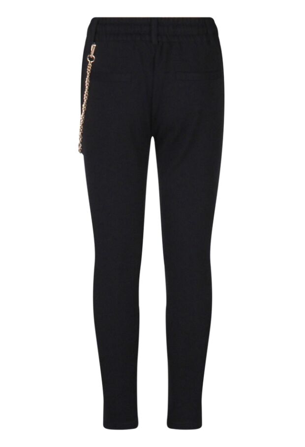 De jersey pantalon voor meisjes is een stijlvol en modern item dat perfect is voor elke gelegenheid. Voorzien van een elegante opnaad en een trendy gouden kettingdetail. Met zijn perfecte pasvorm en unieke accenten is dit de ideale keuze voor jonge fashionista?s die houden van een eigentijdse look!