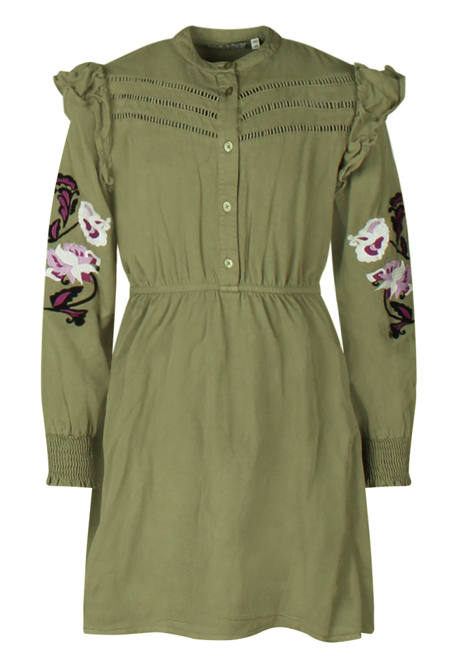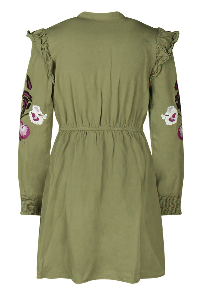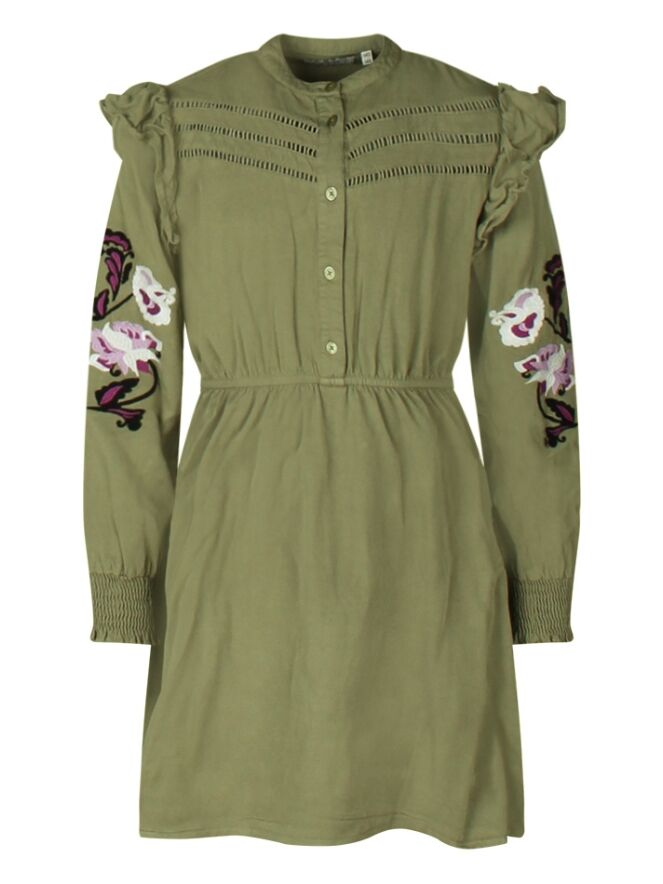 Laat de zomer maar komen! Met dit mooie jurkje steel jij de show! Met bloemenborduursel op de mouwen en een bovendeel dat sluit met knoopjes.
