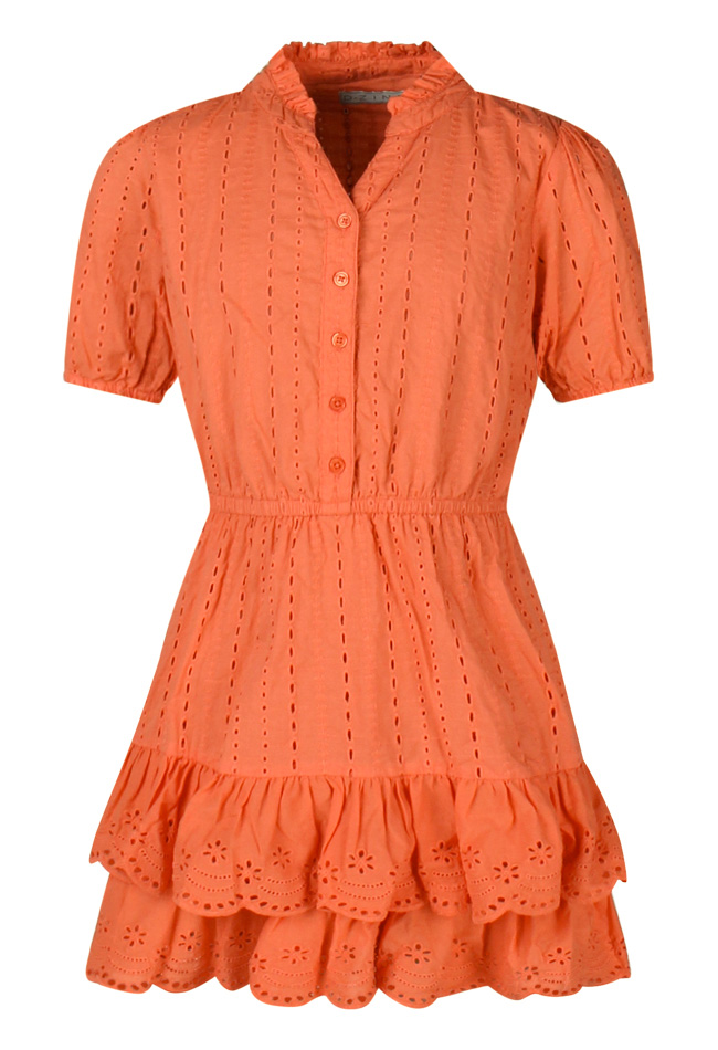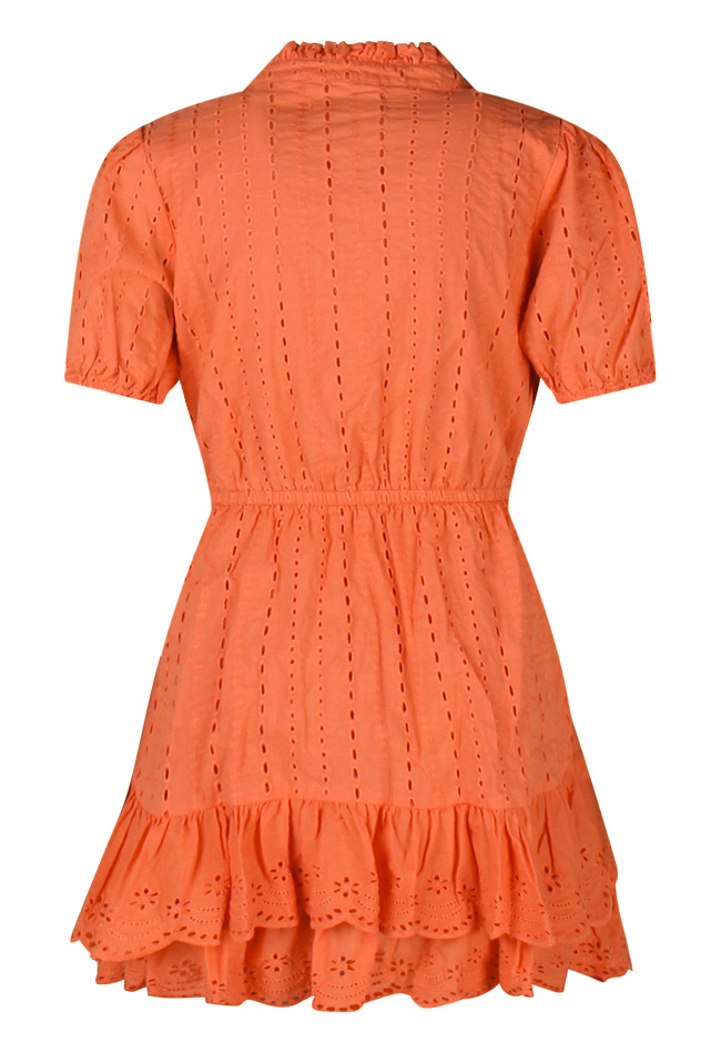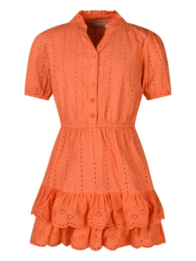 Deze prachtige meisjesjurk is een perfecte keuze voor elke speciale gelegenheid! De fijne broderie details en de vrolijke strokenrok geven de jurk een elegante en speelse uitstraling. De pofmouwen maken het helemaal af en zorgen voor een extra charmante look.
