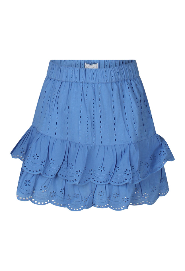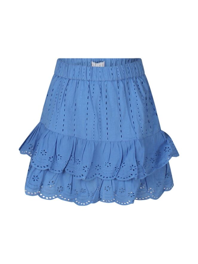 Deze schattige meisjesrok is perfect voor een zomerse outfit! De mooie broderie details en de speelse stroken geven de rok een vrolijke uitstraling.
