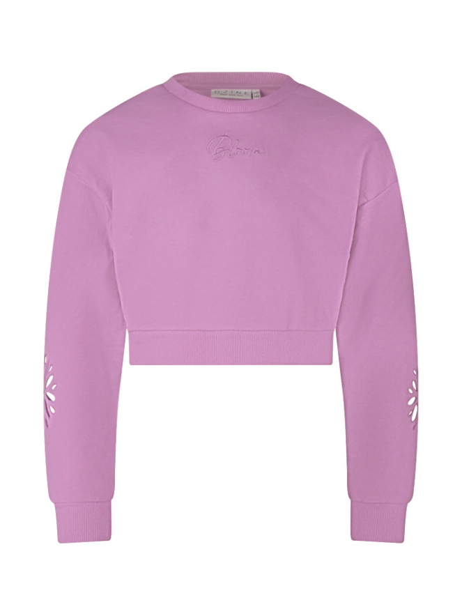 Bloom! Deze sweater is een kort cropped model en heeft een open borduursel onder aan de mouw. Deze is voor de blote buiken dragers een trendy item op zonnige dagen.